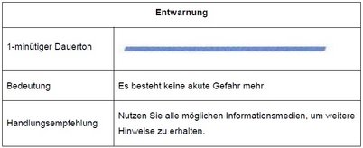 Ein auf und abschwellender Heulton von einer Minute Dauer ist als Signal für Sie besonders wichtig. Dieses Signal bedeutet „Rundfunk einschalten und auf Durchsagen achten“.