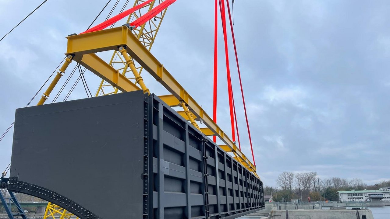 Tauchtunnel für das Kulturwehr Breisach erfolgreich montiert