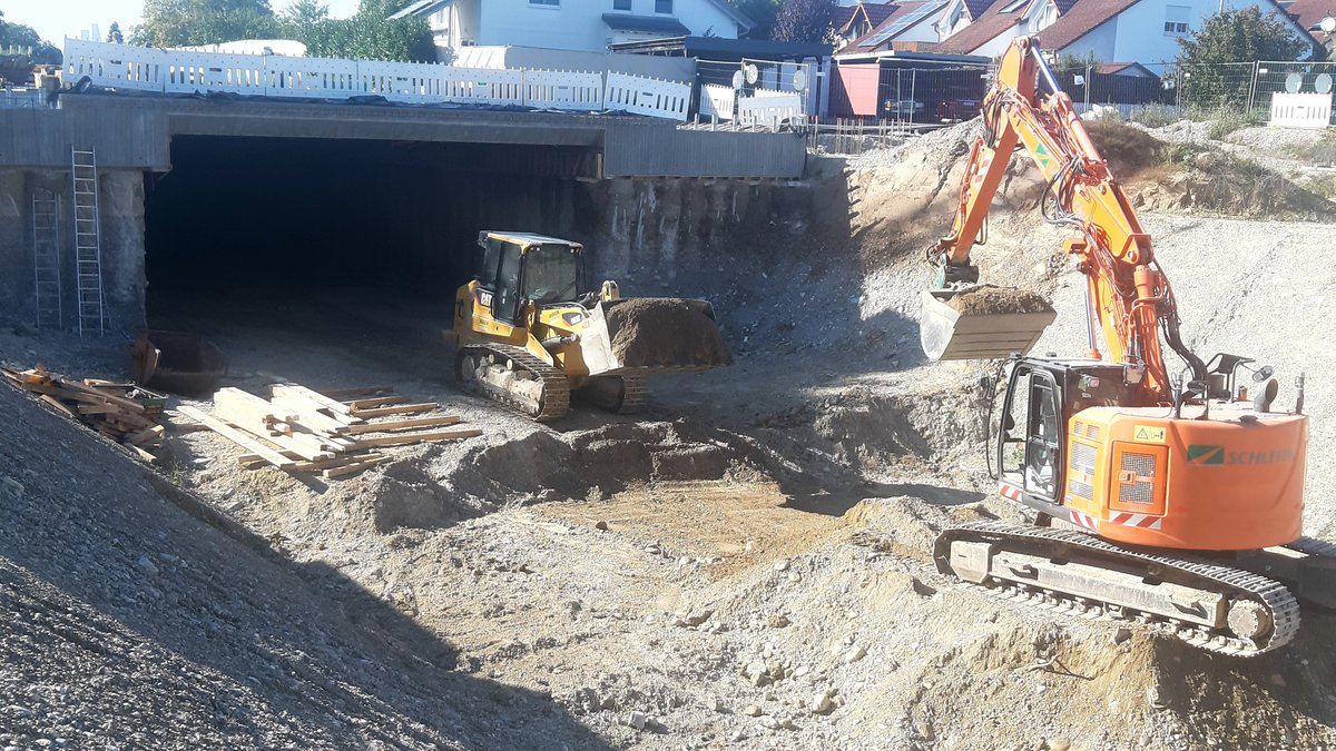 Das Baulos „Auhof/Altrhein“ startete im Juli 2025. Es umfasst eine Brücke, eine Stützwand und einen Durchlass sowie eine Durchpressung unter der Bahnlinie für eine Gewässerumlegung. Des Weiteren werden diverse Lärmschutzwälle sowie der Straßendamm an den bestehenden Bahndamm im Bereich Eisenbahnüberführung „Am Wasserkraftwerk“ und Bahnübergang Herten geschüttet. Die Durchpressung wurde mittlerweile ausgeführt und es erfolgen Arbeiten zur Umlegung des Gewässers Leuengraben. Im Frühjahr 2026 beginnen dann die Bauarbeiten für die drei im Baulos inbegriffenen Ingenieurbauwerken. Sie liegen direkt entlang der Bahn.