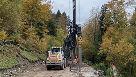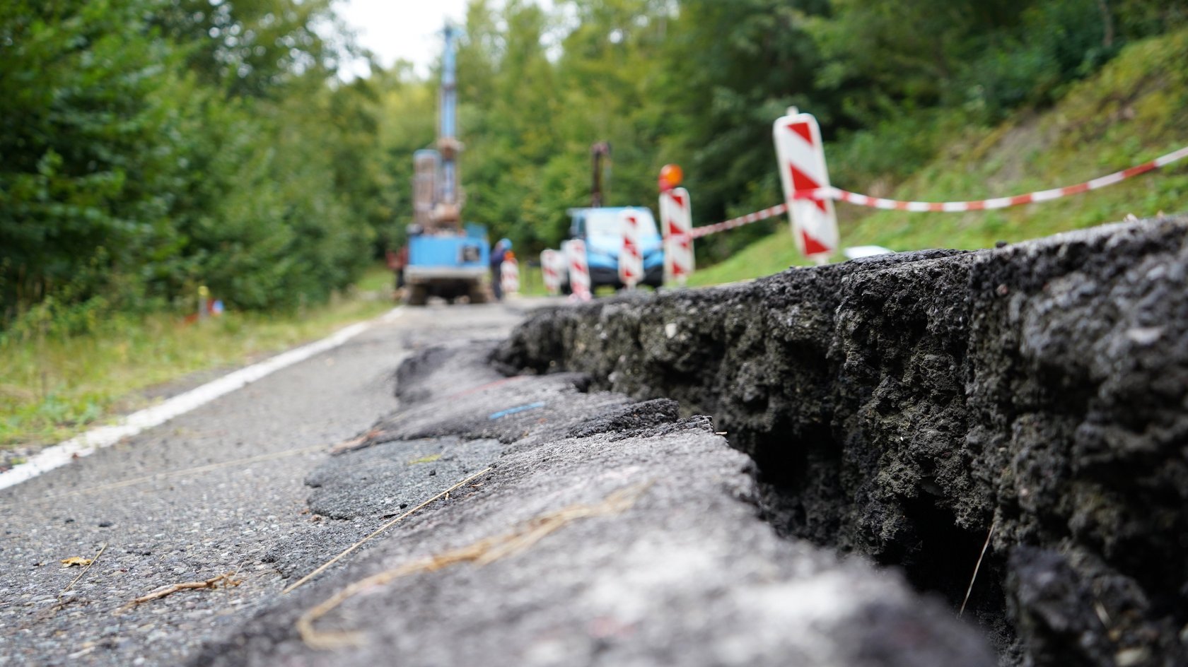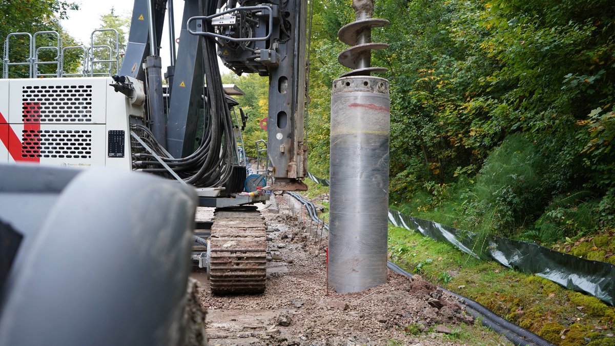 - Nachdem die rechtlichen Voraussetzungen vorliegen, haben Anfang September 2024 Bohrungen einer Spezialfirma für die Erkundung des Untergrundes begonnen. Hierbei hat der akute Rutschbereich Priorität. Es kommen Großgeräte zum Einsatz. Insgesamt werden die Bohrungen ca. zehn Wochen dauern.