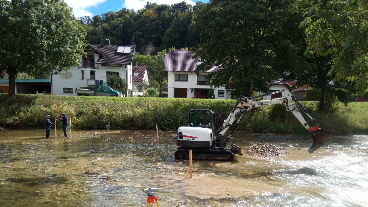 Regierungspräsidium baut in der Donau in Fridingen (Kreis Tuttlingen) Wanderungshindernis für Fische zurück/ Fluss wird fit gemacht für Folgen des Klimawandels