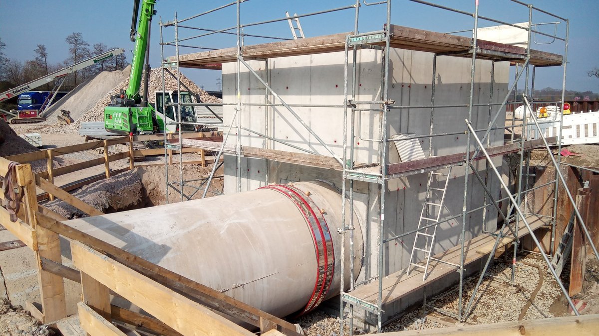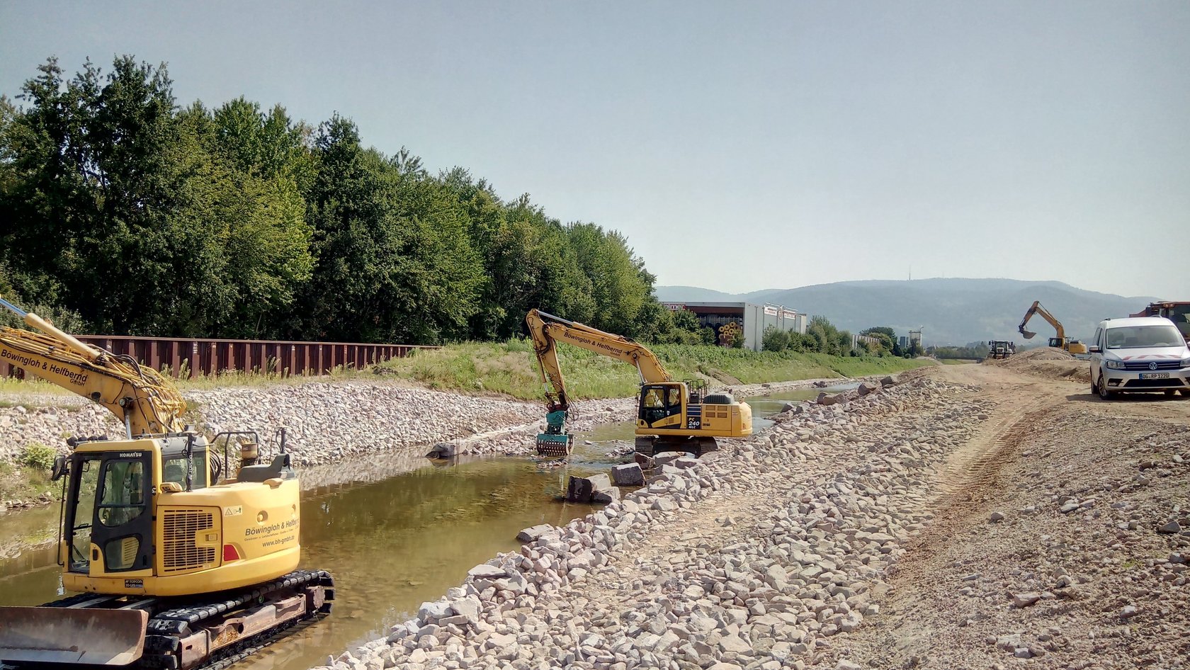 Die Bauarbeiten wurden nach dem offiziellen Spatenstich am 27. Oktober 2021 aufgenommen. Die Arbeiten im 1. Ausbauabschnitt bei Achern zur Aufdimensionierung des Gewässerquerschnittes sind in 2024 abgeschlossen worden. Es folgte noch der aufwendige Neubau von Rückstaubauwerken an städtischen Regenwasserkanälen.