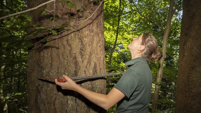 Die Grundlage für jede Planung ist eine umfassende Zustandserhebung. Dafür arbeiten wir in Kommunalwäldern über ca. 500 Hektar Waldfläche mit Rasterstichproben. Diese Betriebsinventuren schreiben wir jedes Jahr für 30 bis 40 Kommunalwälder aus, stellen die Qualität der Erfassung sicher und bereiten die Zahlen für die Forsteinrichtung auf. Neben detaillierten Informationen zu Holzvorräten, vorkommende Baumarten oder zur CO2-Speicherung im Wald liefet die Betriebsinventur auch Daten zu ökologischen Parametern, z. B. zum Totholz im Wald.