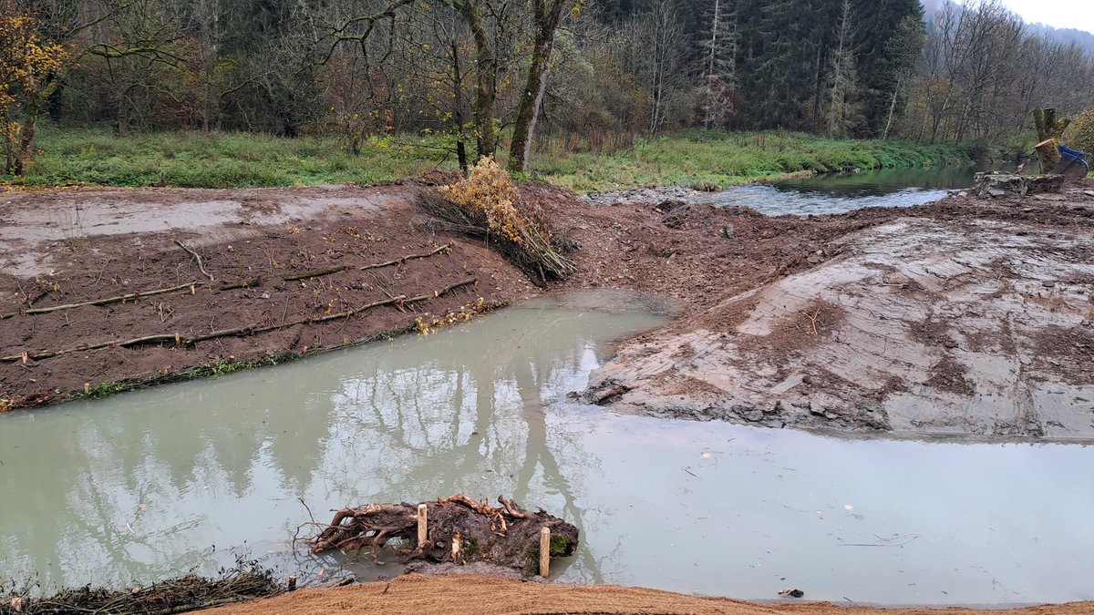 - Erdarbeiten am Ufer zur besseren Vernetzung von Land und Wasser sowie Initiierung der eigendynamischen Gewässerentwicklung
