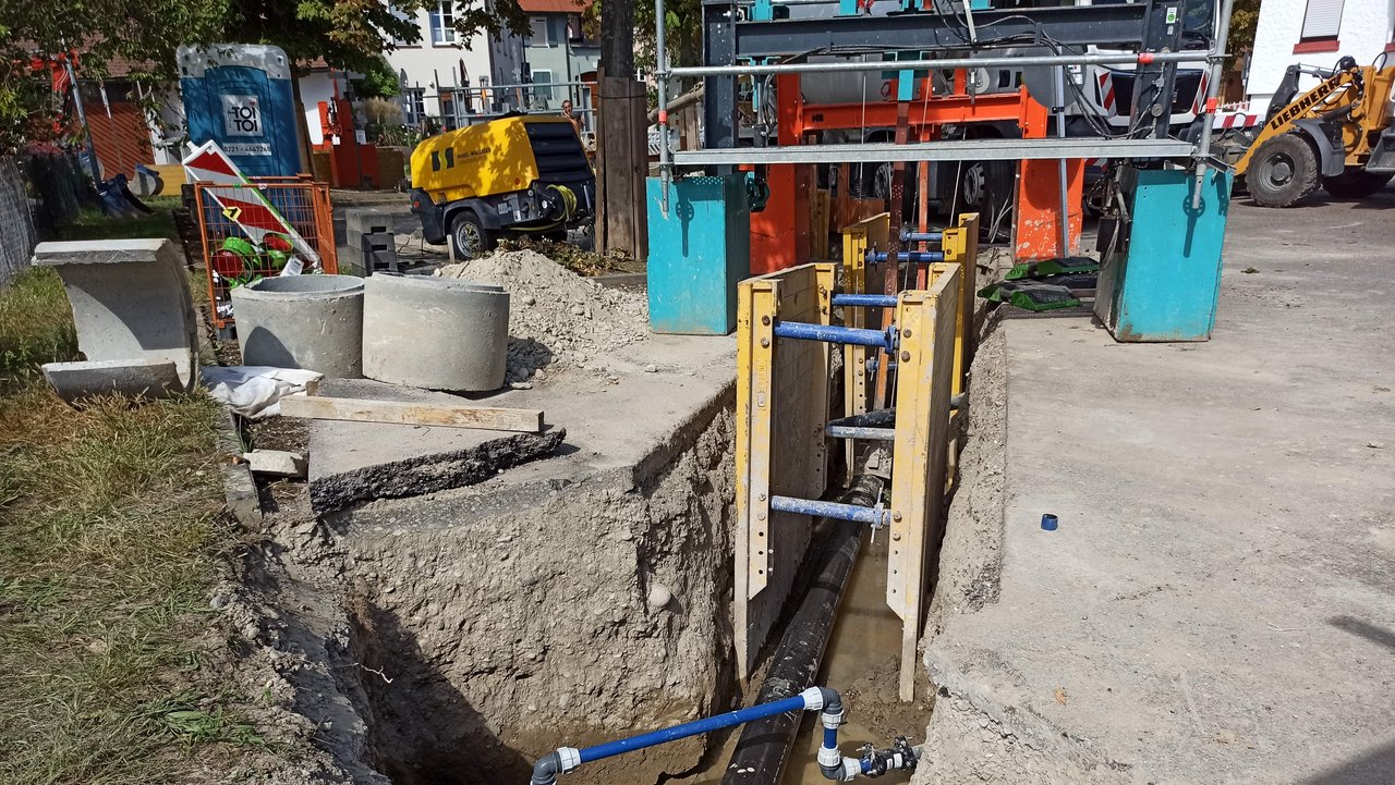 Leitungsbau für die Grundwasserhaltung in der Rheinstraße in Burkheim / Sperrung bis Herrenaustraße