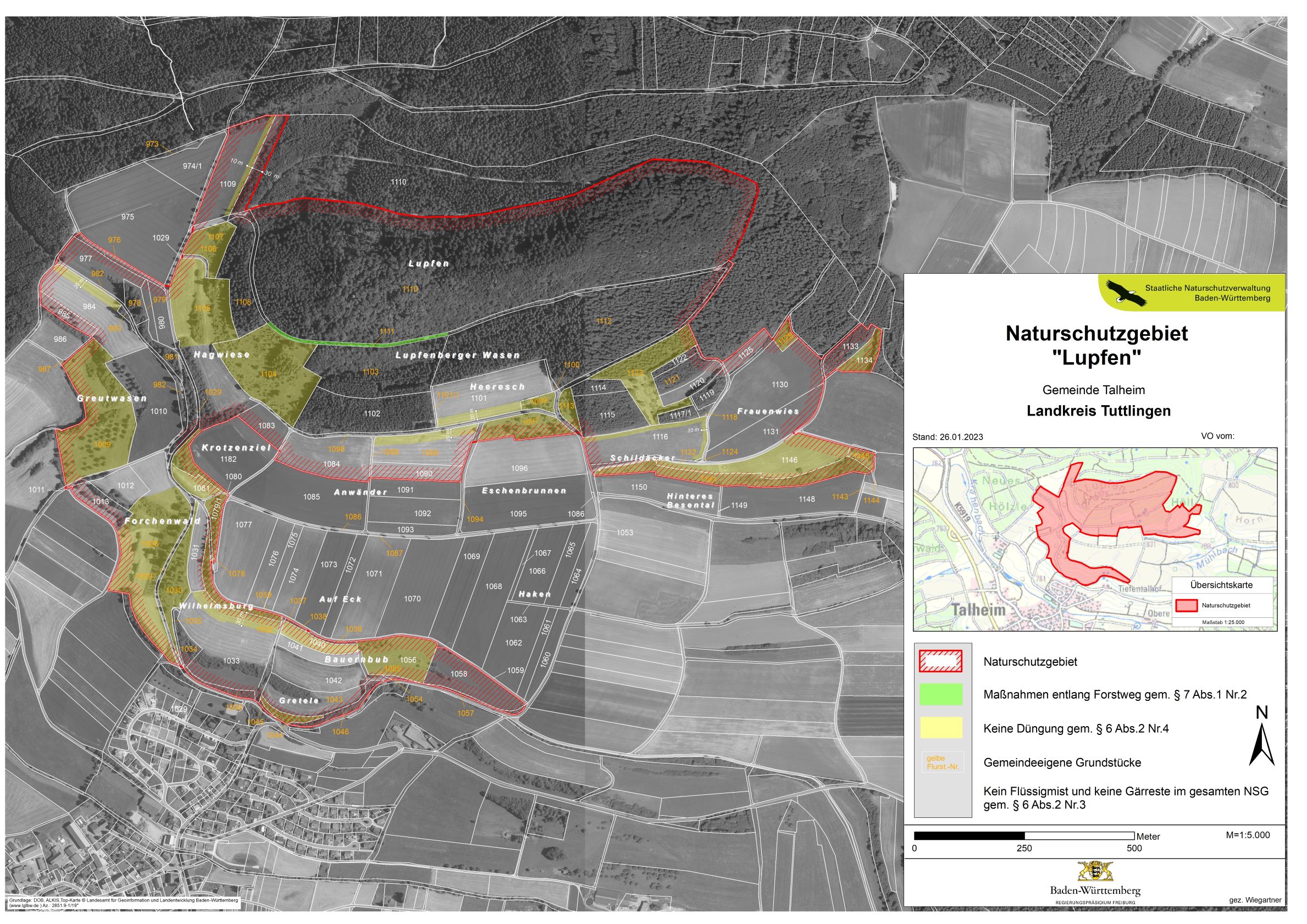 Das Regierungspräsidium Freiburg (RP) informiert die Öffentlichkeit über die geplante Ausweisung des Naturschutzgebiets „Lupfen“ bei Talheim (Landkreis Tuttlingen). Zu der Veranstaltung am Donnerstag, 26. Januar, um 18 Uhr in der Festhalle Talheim (Im Schecken 1, 78607 Talheim) sind alle interessierten Bürgerinnen und Bürger herzlich eingeladen. Die Fachleute des RP werden die Pläne vorstellen und Fragen beantworten.